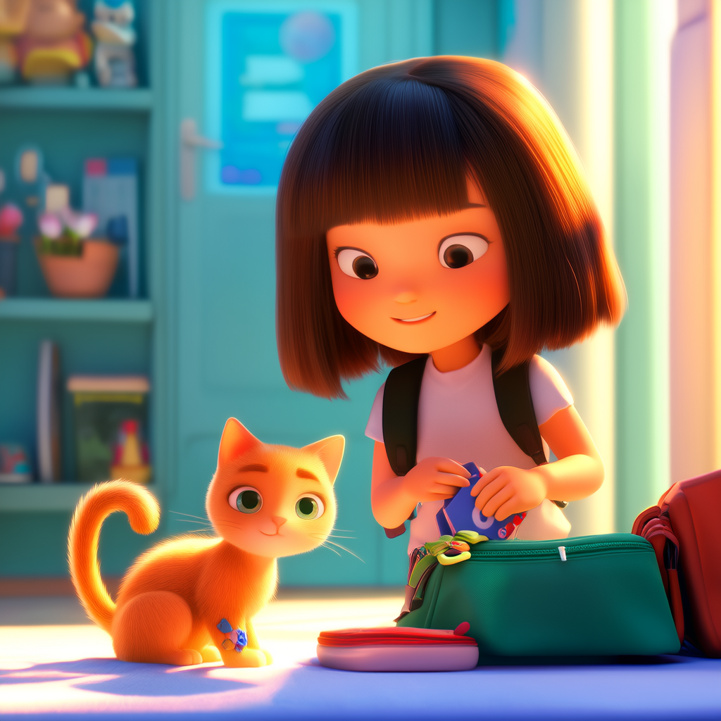 "象彩彩,今天我带你去看看我的学校!"周六早晨,樱樱兴奋地对象彩彩说。妈妈特意给他们准备了一个小书包,里面装着一些小零食和水。象彩彩优雅地甩了甩尾巴,彩虹色的毛发在晨光中闪闪发亮。它似乎也对即将到来的校园之旅充满期待。