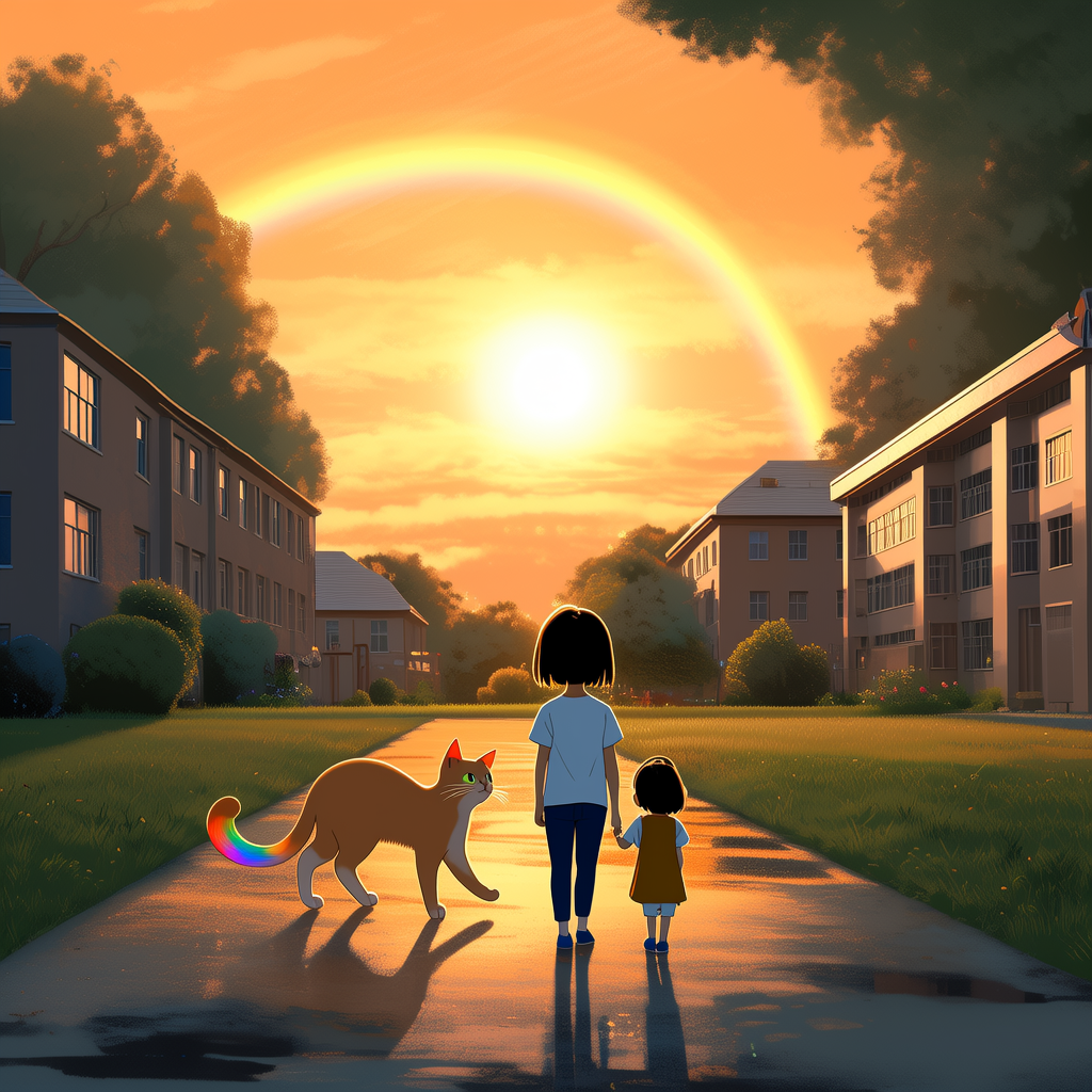 "妈妈,为什么彩虹会这样呢?"樱樱充满好奇地问道,"这看起来不像是普通的彩虹。""这个嘛,"妈妈思考了一下说,"大自然中有很多奇妙的现象等待我们去发现和研究。也许这就是一个新的谜题,等着你这个小科学家去解开呢。"樱樱若有所思地点点头,他注意到象彩彩正用那双明亮的大眼睛注视着他,似乎也在期待着什么。夕阳西下,彩虹渐渐消失了,但樱樱知道,这个神秘的下午给他留下了许多值得思考的问题。