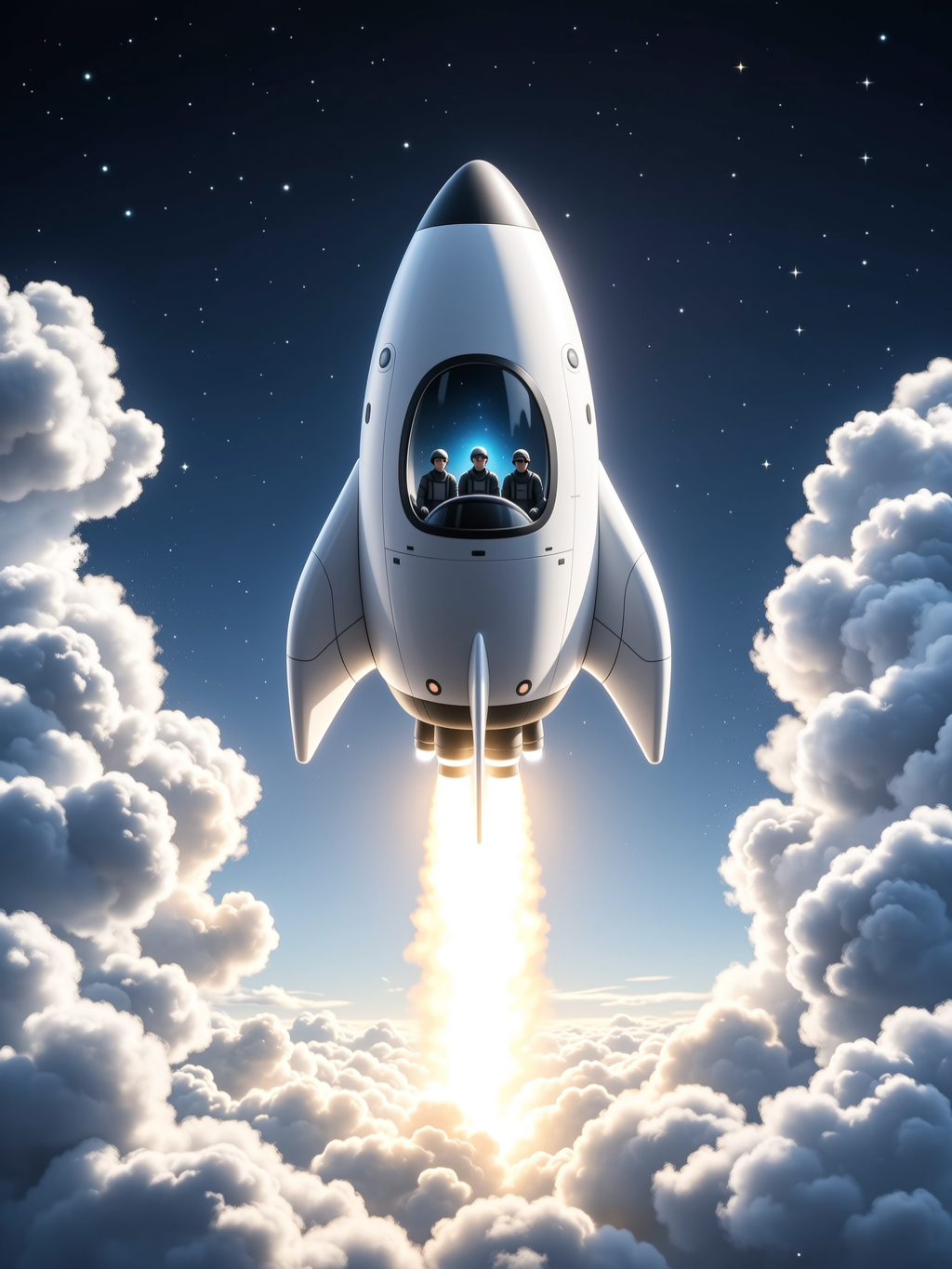 无畏号慢慢升空,窗外的景物一点点变小。"哇!"当飞船穿过一层云朵时,